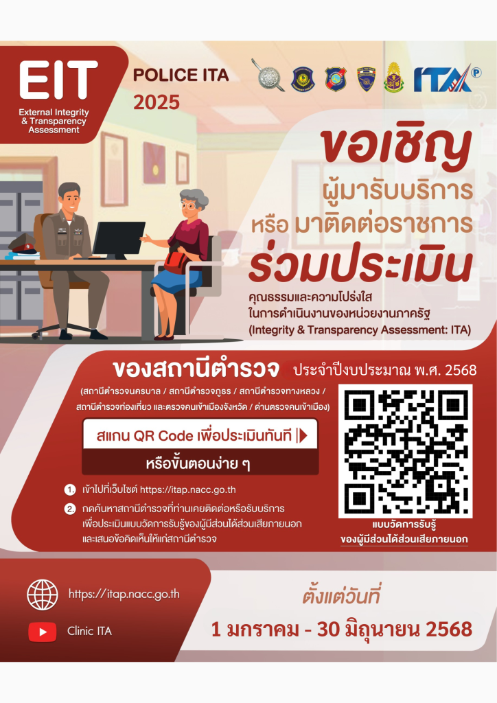 พ.ต.อ.ประกอบ บุญขวัญ ผกก.สภ.ตะกั่วทุ่ง ขอเชิญประชาชนผู้มาติดต่อราชการร่วมประเมินความโปร่งใสของสถาน
