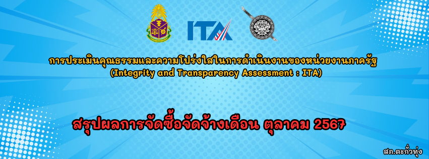 Home » ITA 2568 » การบริหารเงินงบประมาณ » การจัดซื้อจัดจ้างหรือการจัดหาพัสดุ » สรุปผลการจัดซื้อจัดจ้างรายเดือน » สรุปผลการจัดซื้อจัดจ้างเดือน ตุลาคม 2567