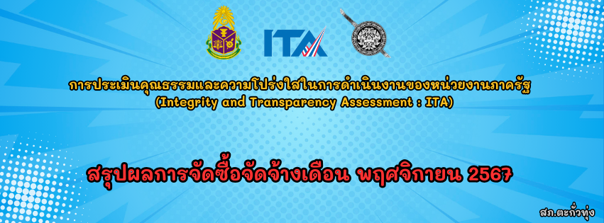 Home » ITA 2568 » การบริหารเงินงบประมาณ » การจัดซื้อจัดจ้างหรือการจัดหาพัสดุ » สรุปผลการจัดซื้อจัดจ้างรายเดือน » สรุปผลการจัดซื้อจัดจ้างเดือน พฤศจิกายน 2567