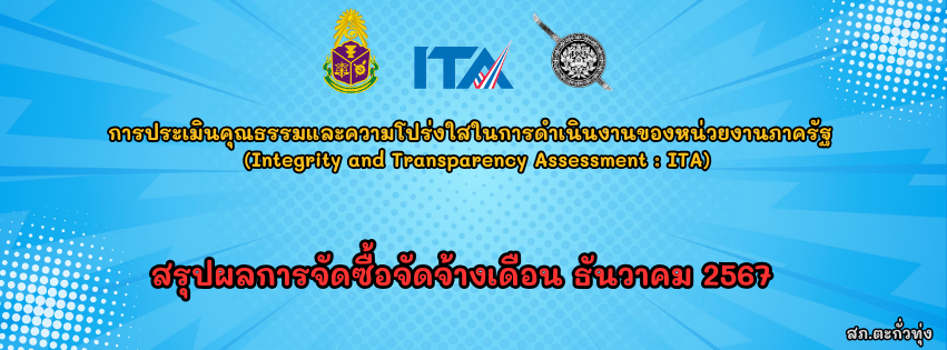 Home » ITA 2568 » การบริหารเงินงบประมาณ » การจัดซื้อจัดจ้างหรือการจัดหาพัสดุ » สรุปผลการจัดซื้อจัดจ้างรายเดือน » สรุปผลการจัดซื้อจัดจ้างเดือน ธันวาคม 2567