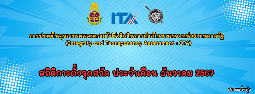 Home » ITA 2568 » การบริหารงาน » การให้บริการ » สถิติผลการดำเนินงาน » สถิติการตั้งจุดสกัด ประจำเดือน ธันวาคม 2567