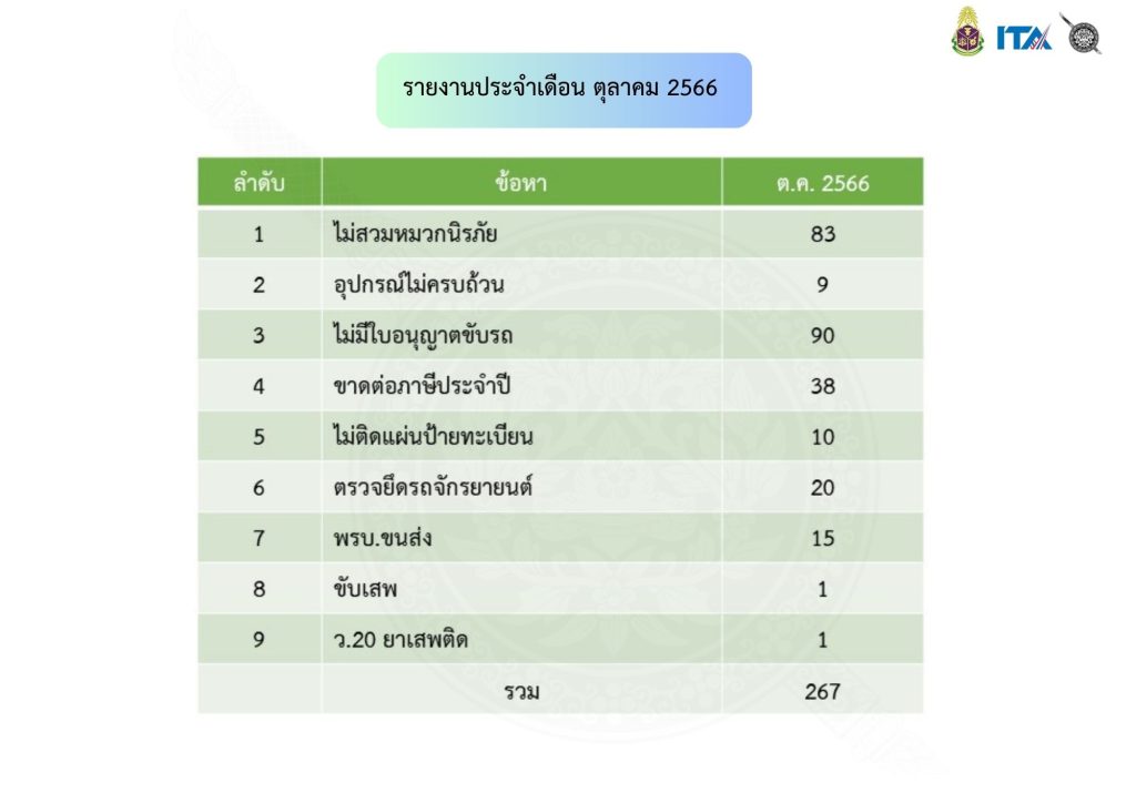 Home » ผลการปฏิบัติงานจราจร ประจำเดือน ตุลาคม 2566