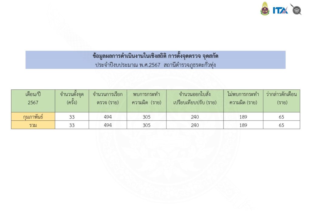 Home » สถิติการตั้งจุดสกัด ประจำเดือน กุมภาพันธ์ 2567